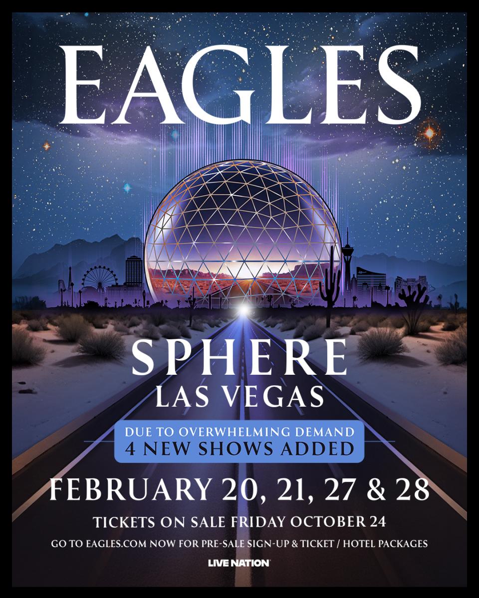 Due to ongoing demand, Don Henley, Joe Walsh, Timothy B. Schmit, Vince Gill and Deacon Frey have announced four new performances at the Sphere on February 20, 21, 27 and 28. Tickets go on general sale at 10am local time on October 24.