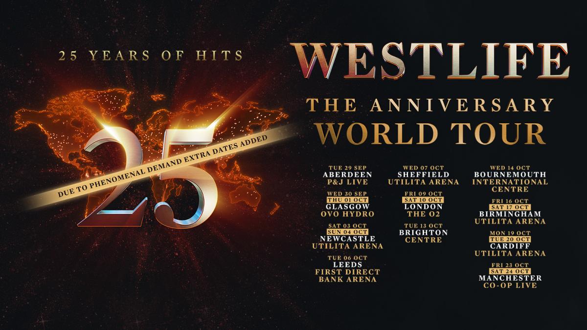 Westlife have added UK and European dates to their 25th Anniversary World Tour. Westlife tickets go on general sale at 10am local time today.