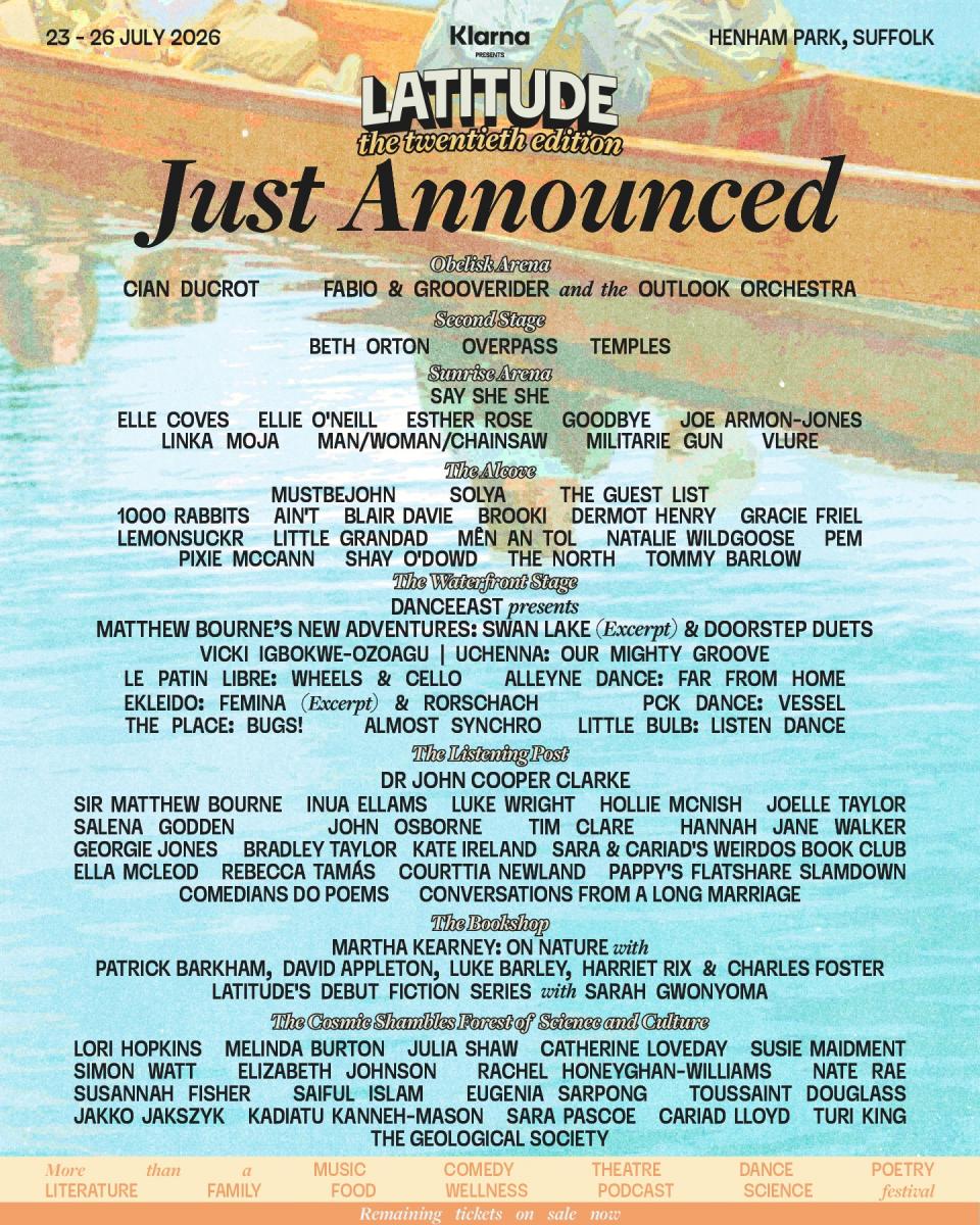 "Twenty years of Latitude, and we've never been more excited about a lineup. This announcement celebrates everything that makes this festival special, the fearless discovery of new talent alongside the return of artists who've helped write our story. From Jalen Ngonda's soul revelation to David Gray's beloved anthems, The Undertones' punk perfection to The Beta Band's cult genius, this is a lineup that spans generations and genres.