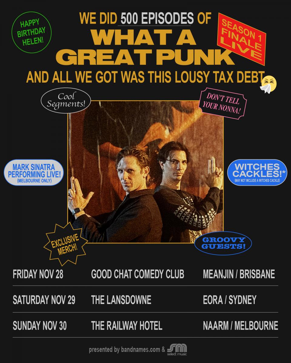 They'll also celebrate 500 episodes of their cult podcast, What A Great Punk, with live shows in Brisbane, Sydney and Melbourne later this month, coinciding with the release of the album. Head here for details.