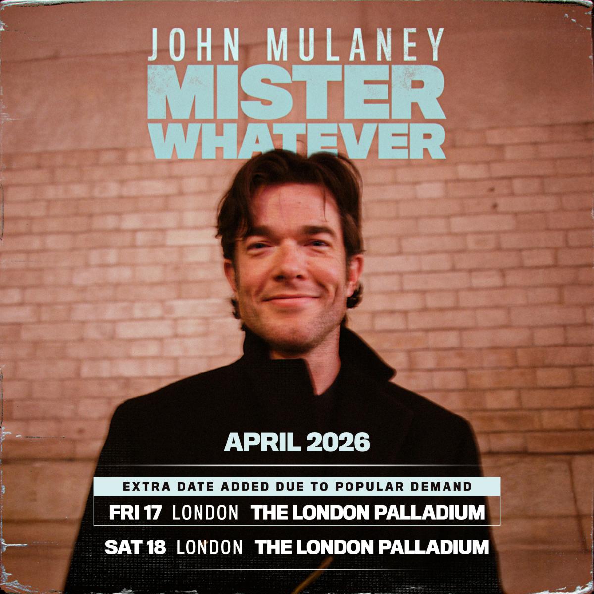 Due to demand, John Mulaney has added a second London date to the recently announced UK and Ireland leg of his Mister Whatever Tour in 2026.