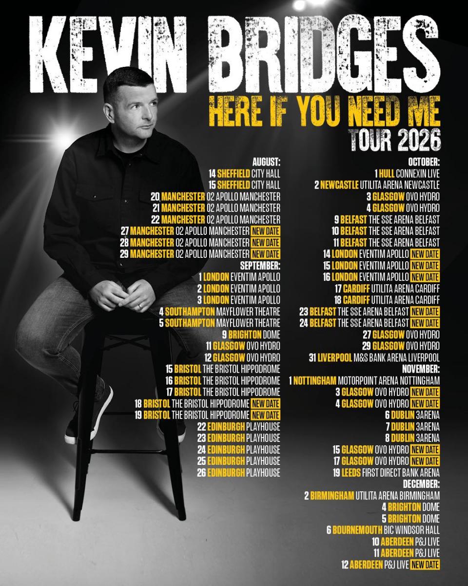 Due to overwhelming demand, Kevin Bridges has added even more UK dates to his Here If You Need Me Tour.