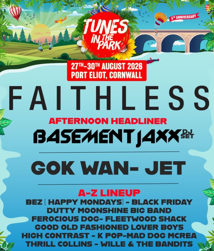 The live music festival — a sister event to Tunes On The Sands — will return to the picturesque setting of Port Eliot House and Gardens in Saltash, Cornwall, with British dance giants Faithless (pictured) headlining the Saturday (August 29), following a DJ set from Basement Jaxx.