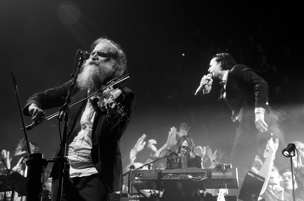 This Bad Seeds configuration — Warren Ellis still the electrified shaman at Cave’s side, Radiohead’s Colin Greenwood adding sinew to the low end, a gospel choir lifting everything skyward — plays with righteous force. They keep the edges jagged, too, and there’s no attempt to diminish a happening that feels alive.