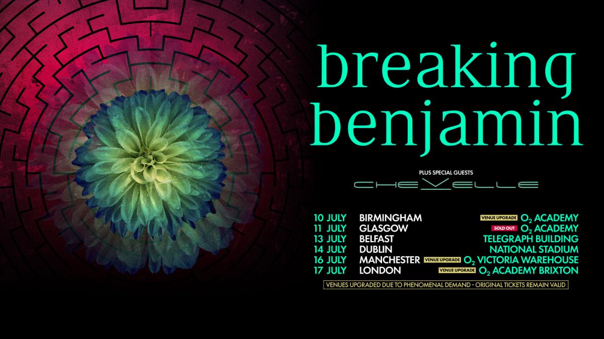 Due to demand, Breaking Benjamin have upgraded three UK venues on their European tour next summer.