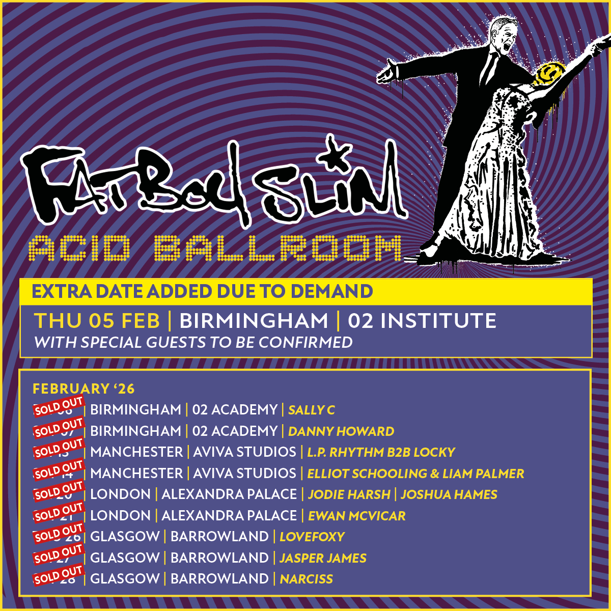 Due to demand, Fatboy Slim has added an extra Birmingham show to his ongoing Acid Ballroom UK Tour.