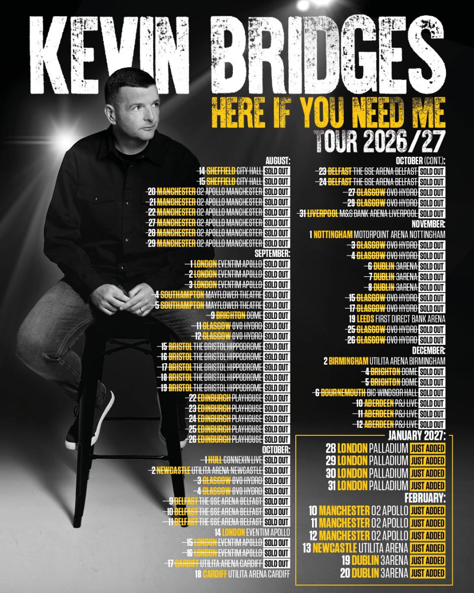 Kevin Bridges has extended his Here If You Need Me Tour into 2027.
