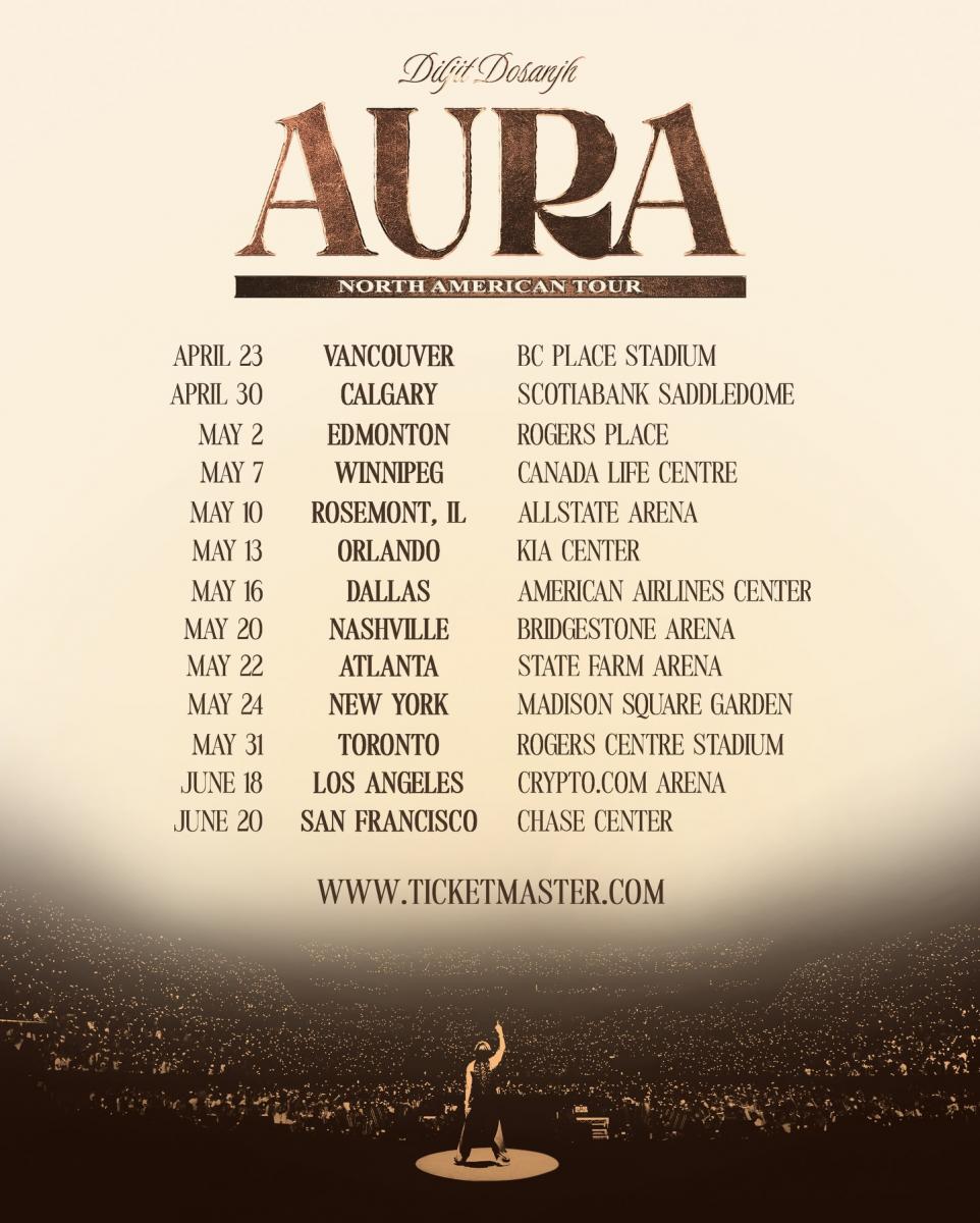 Diljit Dosanjh has announced spring North American dates for his AURA World Tour.