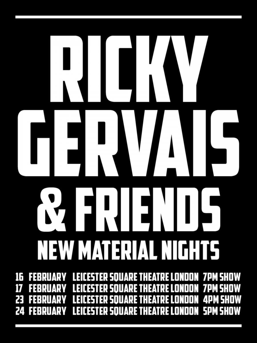 Billed as Ricky Gervais and Friends: New Material Nights, the award-winning comedian will return to Leicester Square Theatre on February 16, 17, 23 and 24.