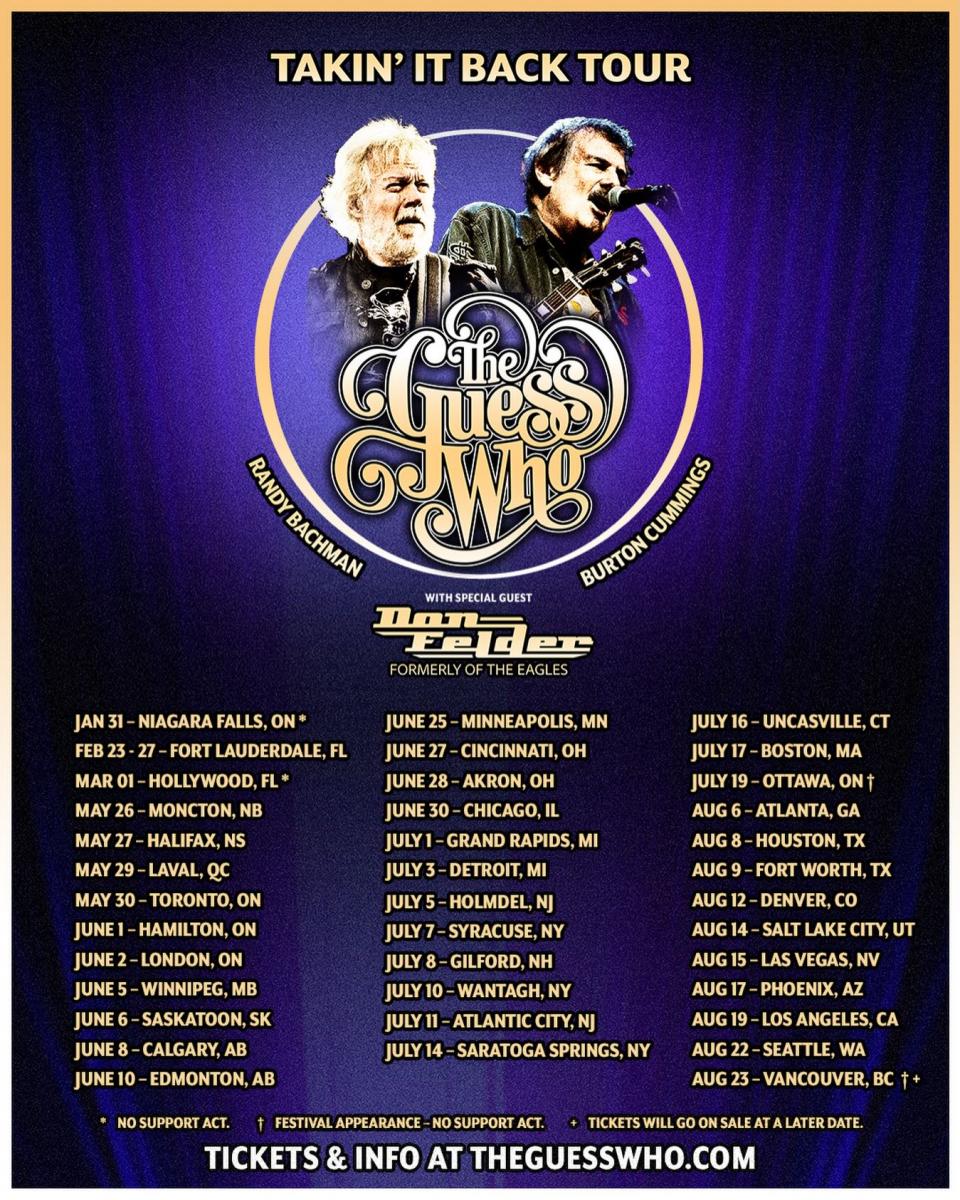 The Guess Who have announced their first US tour in 23 years, the Takin’ It Back Tour.