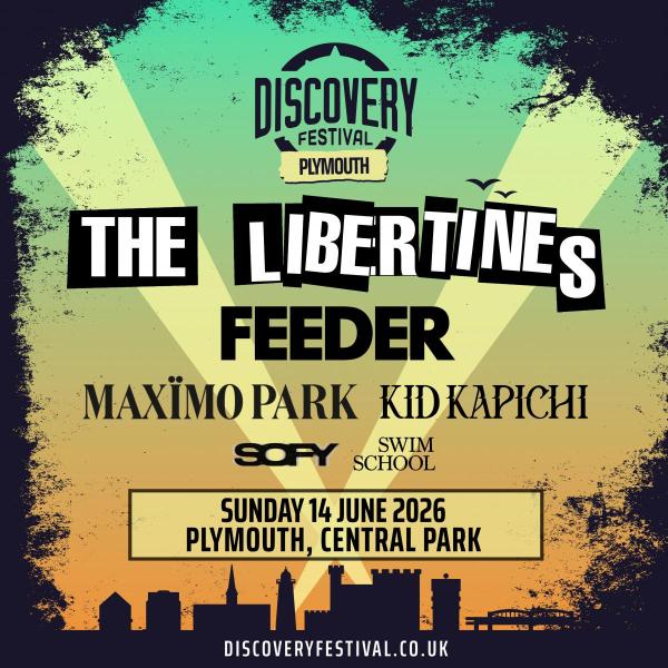 "After the huge excitement of our first two announcements, we’re back with the final day of Discovery Festival in Plymouth and it’s one of our favourites. Get ready for The Libertines, Feeder, Maximo Park, Kid Kapichi, SOFY and Swim School coming to light up Central Park in June.