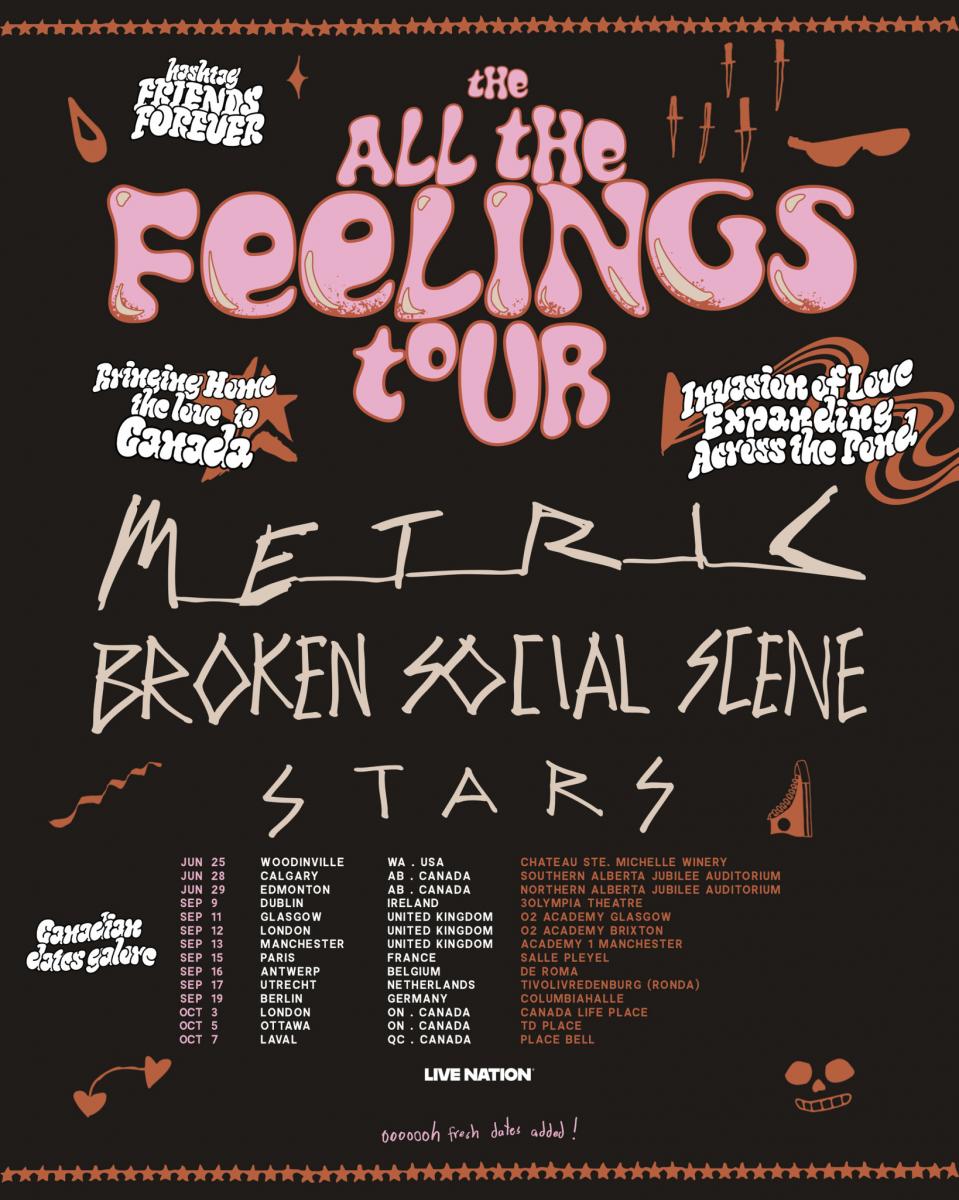 Metric, Broken Social Scene and Stars have announced the UK and European leg of their co-headline All The Feelings Tour.