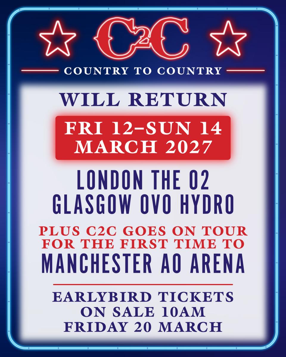 Country To Country began back in 2013 and always boasts a stacked line-up of country's biggest stars, as well as new artists. Over the years it has hosted Tim McGraw, Carrie Underwood, LeAnn Rimes, Luke Bryan, Lady A, Miranda Lambert, Reba McEntire, The Zac Brown Band, Little Big Town, Keith Urban, Darius Rucker, Luke Combs, Faith Hill, Kacey Musgraves, Keith Urban, Chris Stapleton and Lainey Wilson, among others.