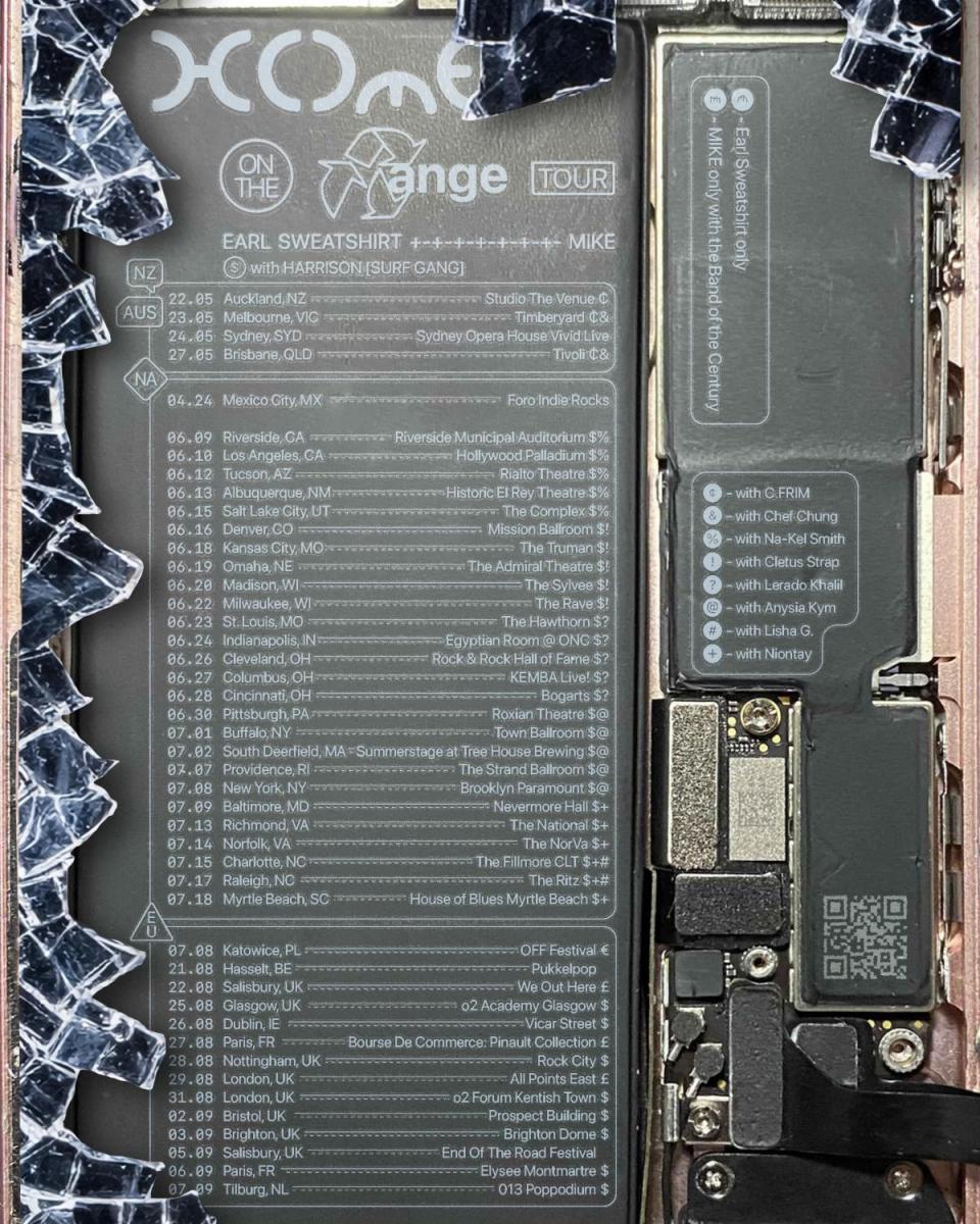 The US run features support from Harrison of Surf Gang, as do their shows in Glasgow, Dublin, Nottingham, London, Bristol, Brighton, Paris and Tilburg. The Poland OFF Festival date will be a solo performance from Earl Sweatshirt, while MIKE with the Band of the Century will appear at We Out Here in Salisbury, the Paris date at Bourse De Commerce, and All Points East in London supporting Tyler, The Creator.