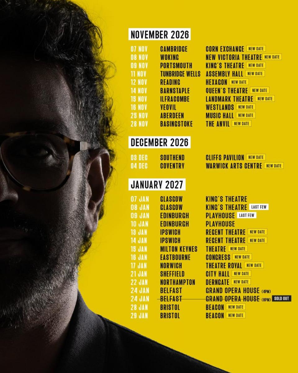 The Crawley comedian and actor will now begin the trek later this year on November 7 at Cambridge's Corn Exchange, with new dates running throughout that month and December.