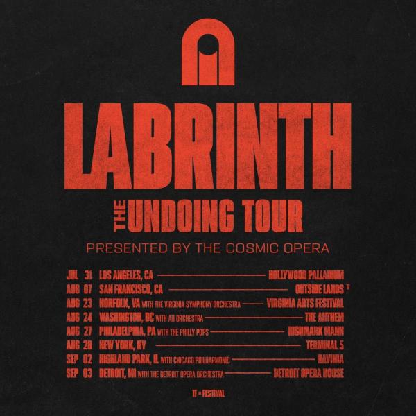 Following its release, Labrinth will take The Undoing Tour:Presented By The Cosmic Opera to seven US cities between July 31 and September 3. The run will include club dates in Los Angeles and New York on July 31 and August 28, respectivey, alongside shows featuring full symphony orchestras in Norfolk, Washington, D.C., Philadelphia, Highland Park and Detroit. Labrinth will also appear at Outside Lands festival in San Francisco on August 7. Tickets go on general sale at 12pm local time on Friday (April 24).