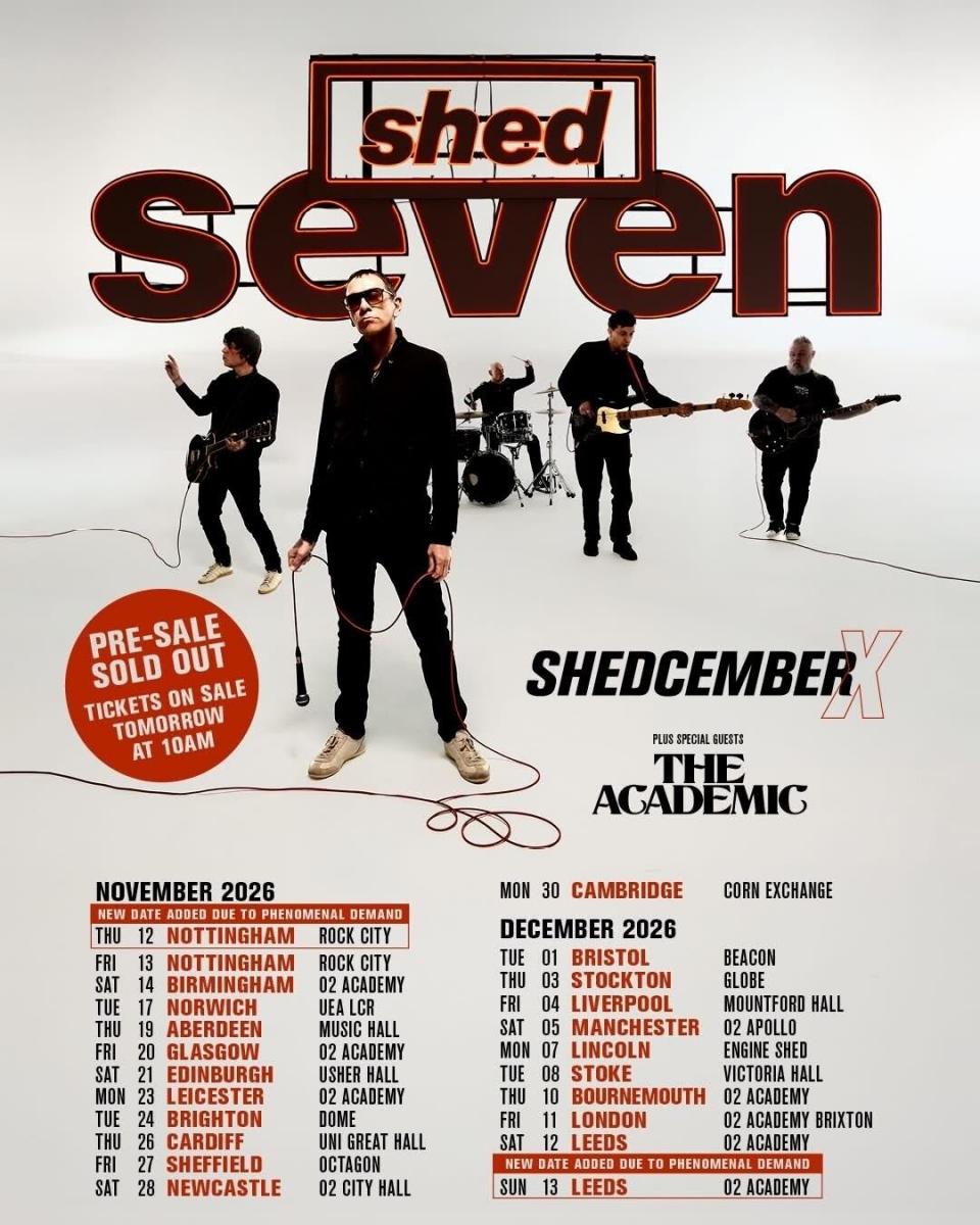 Ahead of the tour, Shed Seven will play a series of dates this spring and summer, including sets at Neighbourhood Festival and the Isle Of Wight Festival, a Halifax show celebrating 30 years of 'A Maximum High' as part of the Live At The Piece Hall series and a date supporting Richard Ashcroft in Berkshire as part of the Heritage Live series. They'll also perform in Belfast and Dublin in October.