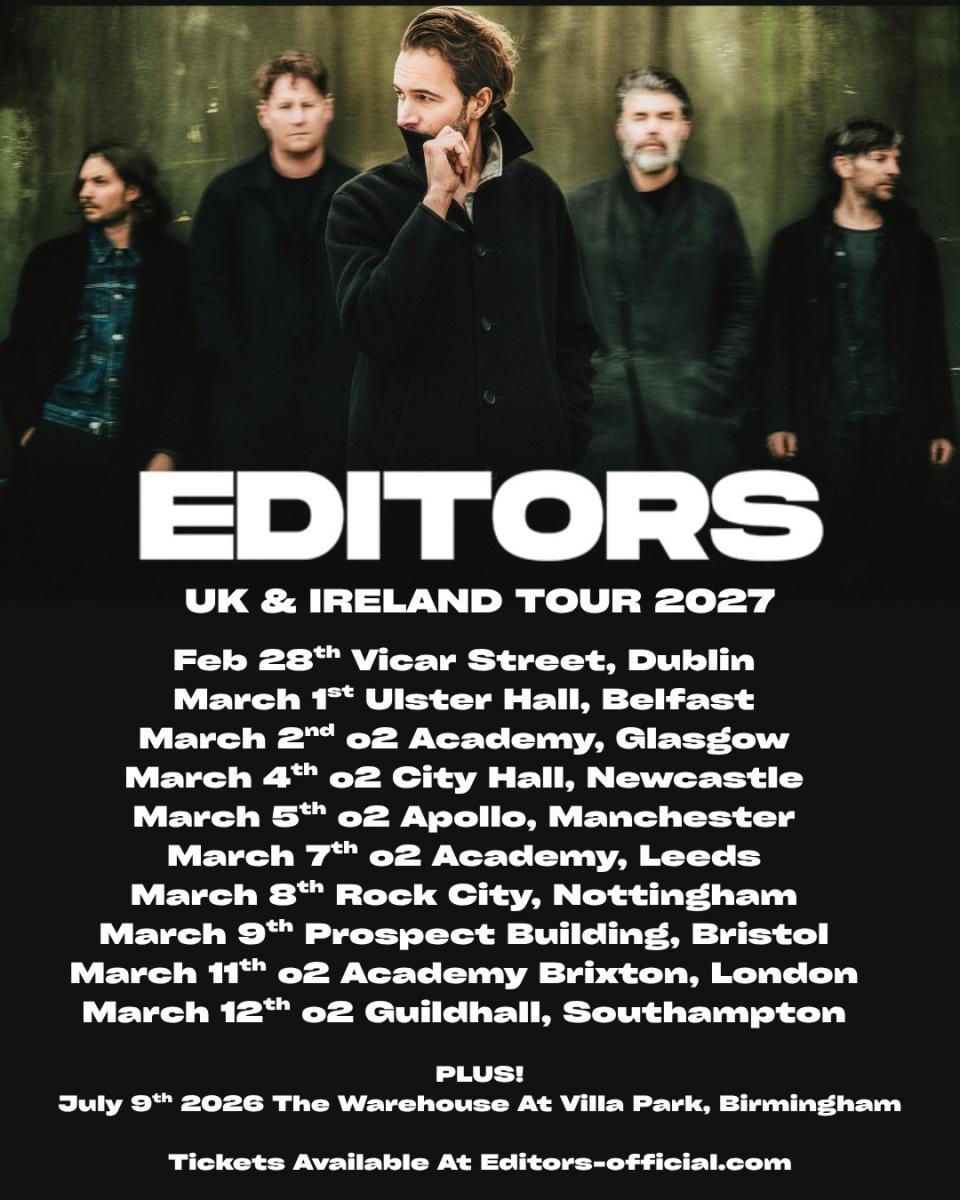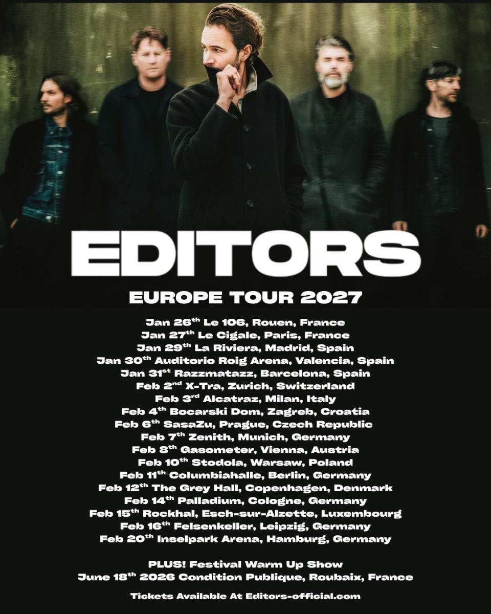 Editors Announce UK & European Tour For Early 2027, Share New Single Call It In